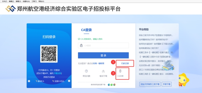 平台目前支持两种注册方式:扫码注册和CA注册。两种方式二选一即可,注册前需先办理数字证书。