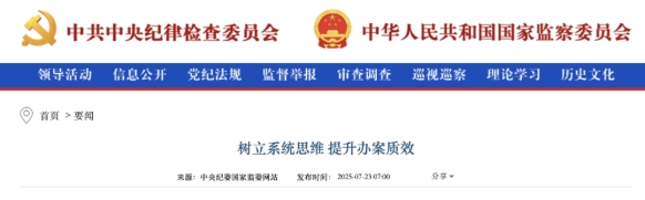 中央纪委国家监委网站发布《树立系统思维 提升办案质效》一文提出,深化“纪巡审”联动监督,紧盯工程建设、教育医疗、养老社保等重点领域,实现纪检监察监督与巡察监督、审计监督同步联动。